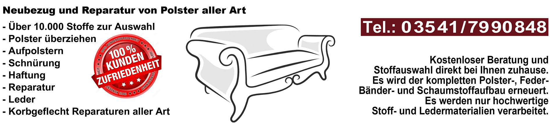 Antike Möbelrestaurationen • Stühle • Sessel • Eckbänke - Sofas • Hocker • Kissen - Tagungs- und Gastronomiebereiche - 10.000 Stoffe zur Auswahl (Muster) - Schreinerarbeiten • Sattlerarbeiten - Klein- und Großreparaturen• fachmännisch • kompetent - ausführliche Stoffberatung (unverbindlich und kostenlos) - kostenlose Abholung sowie Lieferung (innerhalb von 100km)